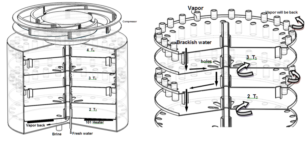 Our system efficiency is high, and the results suggest that efficiency can be maximized by choosing specific operational conditions for various applications. Our system can be scaled up through our innovative, dynamically controlled compact MED plus MVC systems. Currently, other competitors use the 1-effect MVC system which is very bulky and had much lower energy efficiency.